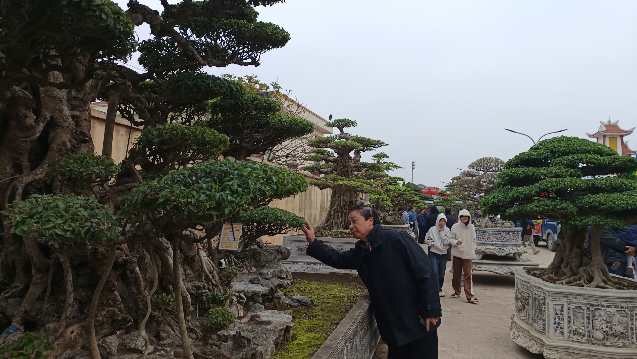 Bên cạnh việc cây cảnh được trưng bày tại lễ hội hoa, cây cảnh Vị Khê, nhiều nhà vườn đã mang trưng bày cây cảnh tại khu vực đền Trần thành phó Nam Định - Ảnh cây cảnh của nhà vườn Đức Thìn một nhà vườn nổi tiếng tại địa phương